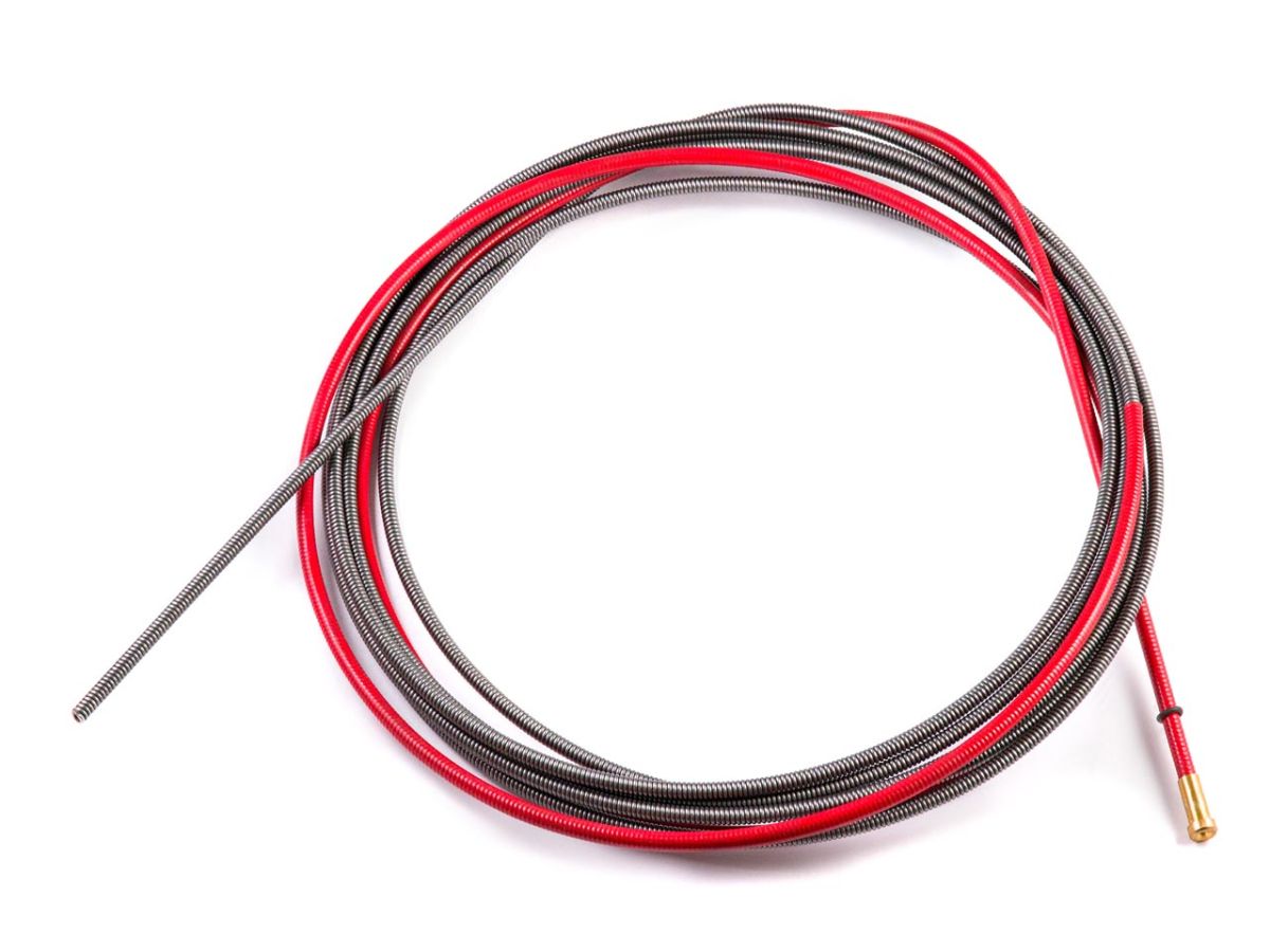 Канал направляющий PRIME(1,0–1,2) 5,4 м красный необходим в сварке типов MIGMAG для подачи сварочной проволоки к соплу сварного пистолета. Подача происходит непосредственно от инвертора или от выносного элемента, подающего проволоку. Фиксация концов канала осуществляется в горелке и в инверторе.