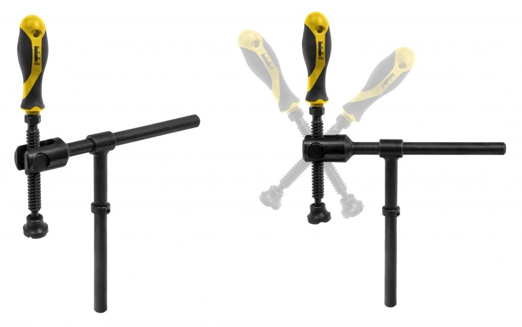 Струбцина универсальная КЕДР (для Д-16 EXPERT) предназначена для точной и надежной фиксации закрепляемых деталей, для фиксации в труднодоступных местах может использоваться только верхняя часть струбцины. Струбцина регулируется как по горизонтали, так и по вертикали. Рабочий винт имеет шарнирный узел крепления, что дает возможность менять угол фиксации до 45°, такая конструкция объединяет преимущества стандартных струбцин 90 град. и струбцин с углом 45 град. Рукоять струбцины имеет специальное прорезиненное и эргономичное покрытие. За счет применения воронения деталей струбцины гарантируется длительный срок службы.