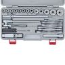Головки 10, 11, 12, 13, 14, 15, 17, 19, 22, 24, 27, 30, 32 - 13 штКлючи 8х10, 10х12, 12х14, 13х15, 14х17, 17х19 - 6 штКлюч трещотка - 1 штВороток Т-образный - 1 штУдлинитель - 1 штШарнир - 1 штГоловка свечная - 1 штПлоскогубцы - 1 штОтвертка - 1 штКейс - 1 шт