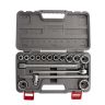 Головки 10, 11, 12, 13, 14, 15, 17, 19, 22, 24, 27, 30, 32 - 13 штКлюч трещотка - 1 штВороток Т-образный - 1 штУдлинитель - 1 штКейс - 1 шт