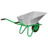 Садово-строительная тачка Сибртех 689633 грузоподъемностью 170 кг и объемом корыта 90 л будет полезна во время строительства или ухода за дачным участком. Ее используют для перемещения мусора, веток, листьев, грунта, щебня, песка, а также строительных смесей. Стальная рама с толщиной стенок 1,2 мм и кузов со стенками толщиной 0,7 мм обеспечивают устойчивость к нагрузкам. Кузов установлен на одно колесо, что увеличивает маневренность тачки.