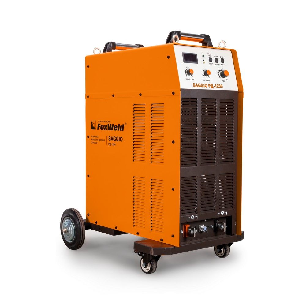 SAGGIO РД-1250 – многофункциональная трёхфазная установка инверторного типа, предназначенная для воздушно-дуговой строжки (ARC AIR), ручной дуговой сварки (ММА), а также аргонодуговой сварки на постоянном токе (TIG LIFT). Ручки регулировки сварочного тока и встроенных функций Arc Force (форсаж дуги) и Hot Start (горячий старт) на панели управления позволяют легко настроить установку под конкретные задачи. Функция VRD (снижение напряжения холостого хода) повышает безопасность и исключает риск поражения сварщика электрическим током. К аппарату можно подключить пульт дистанционного управления, который идёт в комплекте. SAGGIO РД-1250 оборудован тележкой на колёсах.МНОГОФУНКЦИОНАЛЬНОСТЬ 3-В-1: Установка воздушно-дуговой строжки может работать в трёх режимах: воздушно-дуговой строжки (ARC AIR), ручной дуговой сварки (ММА), а также аргонодуговой сварки на постоянном токе (TIG LIFT).ВЫСОКАЯ ПРОИЗВОДИТЕЛЬНОСТЬ: Большой сварочный ток, ПВ 60% на максимальном токе, мощная установка с максимальным сварочным током 1250 А, КПД 85% — всё это обеспечивает эффективность и повышает производительность сварочного процесса.СНИЖЕНИЕ НАПРЯЖЕНИЯ ХОЛОСТОГО ХОДА: Функция VRD (снижение напряжения холостого хода) повышает безопасность и исключает риск поражения сварщика электрическим током. Сварочный процесс становится более безопасным в замкнутых пространствах и при сварке в условиях повышенной влажности.ПУЛЬТ ДУ: К установке можно подключить пульт дистанционного управления (идёт в комплекте), что позволяет регулировать сварочный ток непосредственно вблизи проведения сварочных работ, создавая условия для получения максимального качества сварного шва.ПОДКЛЮЧЕНИЕ 400 В: Подключение к трёхфазной сети питания 400 вольт увеличивает эффективность установки воздушно-дуговой строжки (сварочный ток, расход электроэнергии).ПРЕИМУЩЕСТВА:Большой сварочный токЦифровой дисплейРегулируемая функция Горячий стартРегулируемая функция Форсаж дугиФункция АнтизалипаниеПлавная регулировка сварочного токаРежим TIG LIFTФункция VRDИнвертор на транзисторах IGBTУдобная эксплуатацияУвеличенный срок службыКОМПЛЕКТАЦИЯ: Установка воздушно-дуговой строжки SAGGIO РД-1250 – 1 шт.; Сетевой кабель 3,5 м (3х16+1х1) – 1 шт.; Клемма заземления типа струбцина – 1 шт.; Обратный кабель 70 мм², 8 м – 2 шт.; Пульт дистанционного управления – 1 шт.; Комплект платформы с 4-мя колёсами и болтами – 1 шт.; Инструкция по эксплуатации + Гарантийный талон – 1 компл.*Производитель оставляет за собой право менять комплектацию оборудования.