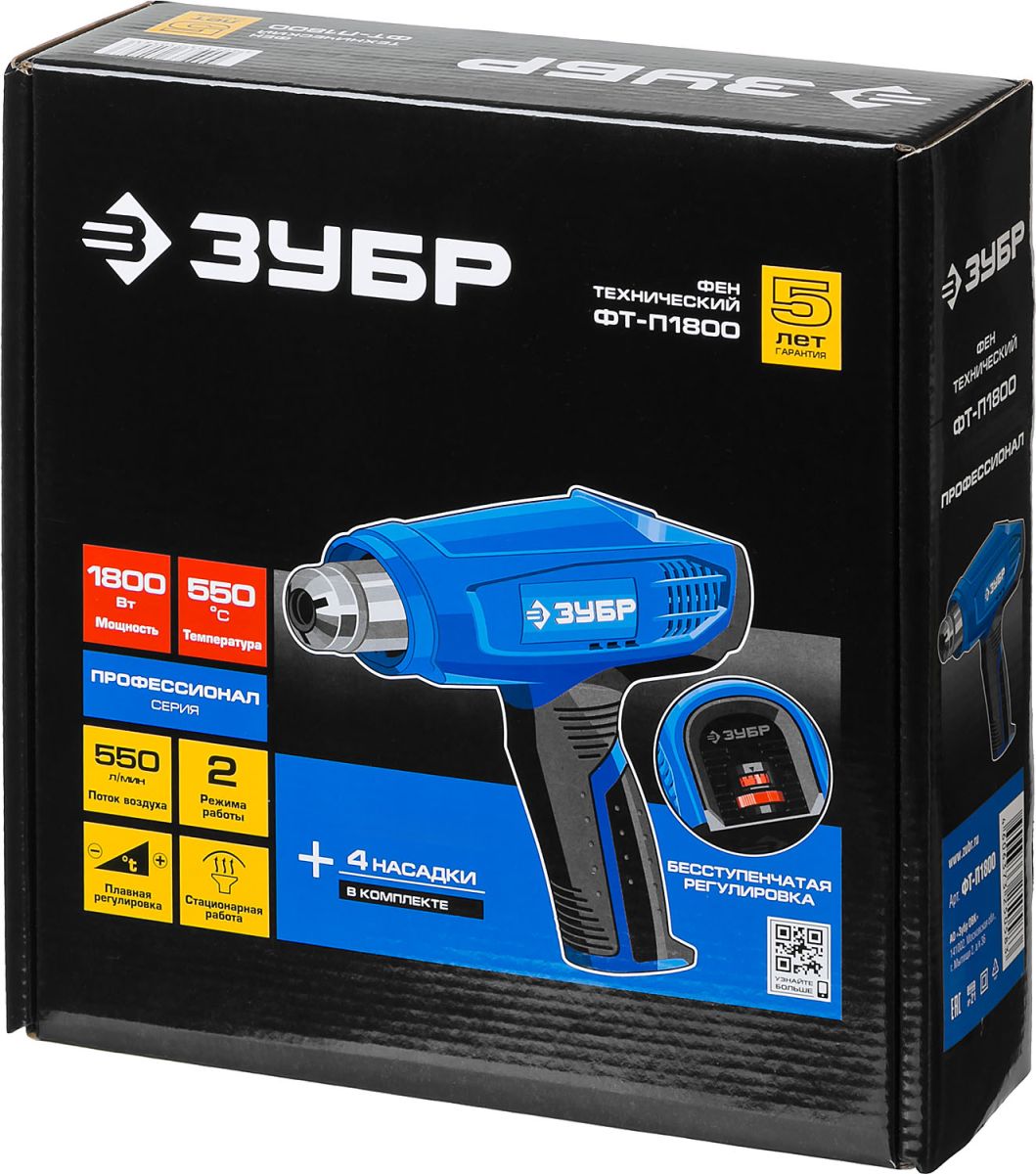 Читать все статьиЗУБР 1800 Вт, технический фен, Профессионал (ФТ-П1800)